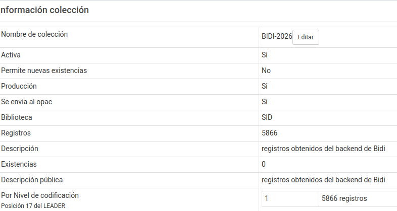 - Importación de todos los registros en la Colección especial BIDI-2026